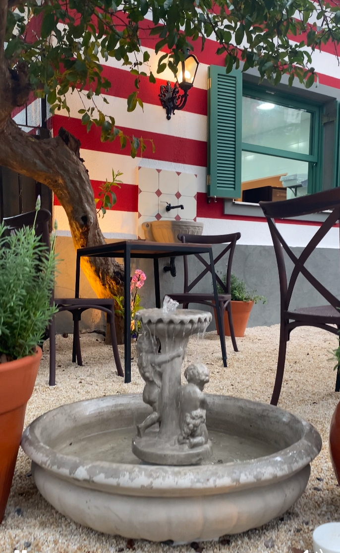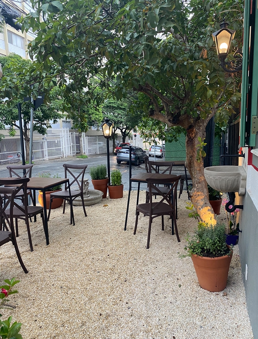 Um clima de casa, lanches servidos pela janela e saboreados à sombra de uma goiabeira! Nesse projeto procuramos trazer um ar de Itália, criando uma praça com direito a banco e chafariz, na esquina de uma charmosa vila da região sul de São Paulo