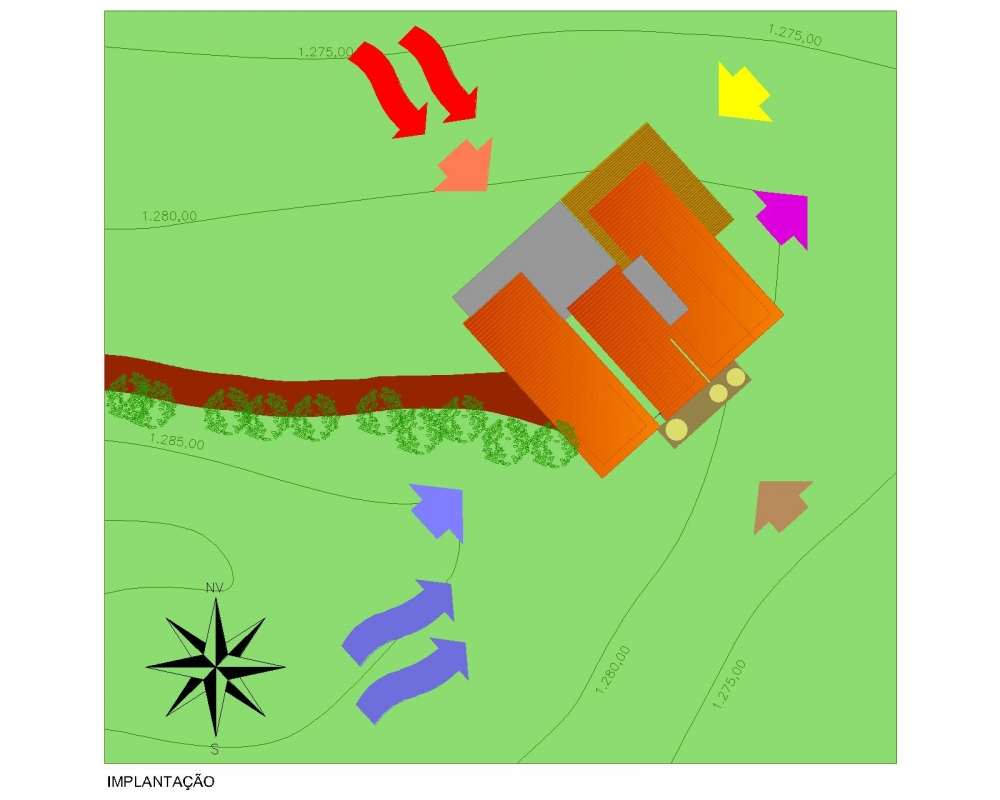 Projeto de uma residência na região serrana de Minas Gerais cujas premissas foram de gerar o mínimo de impacto ao meio físico e utilizar estruturas pré fabricadas que permitissem agilidade de montagem, modulação e minimização de resíduos.